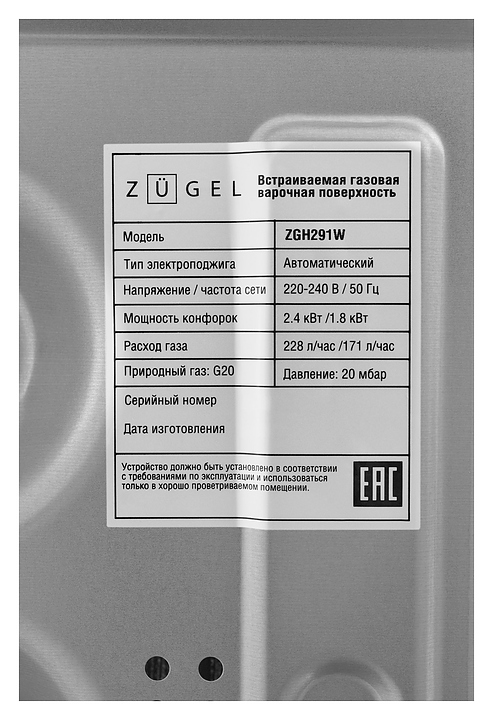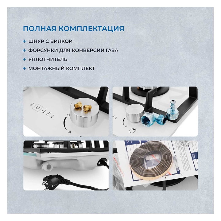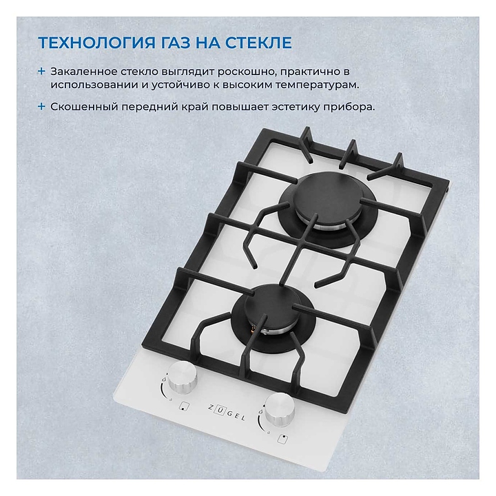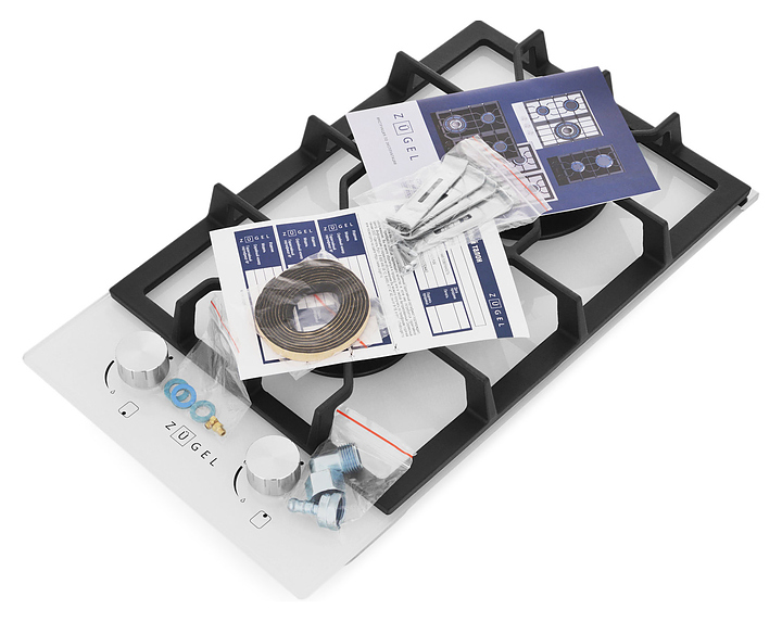 Варочная панель Zugel ZGH291W предназначена для приготовления большого ассортимента блюд в наплитной посуде в домашних условиях. Модель оснащена механическим управлением, 2 конфорками разной мощности, автоматическим электроподжигом Auto-On и рукоятками Steel Design. Газ-контроль Gas Protection автоматически перекрывает подачу газа при погасшем пламени. Рабочая поверхность выполнена из закаленного стекла, решетки - из чугуна, рукоятки - из бакелита. В комплект поставки входят шнур с вилкой, форсунки для конверсии газа, уплотнитель и монтажный комплект. Особенности: