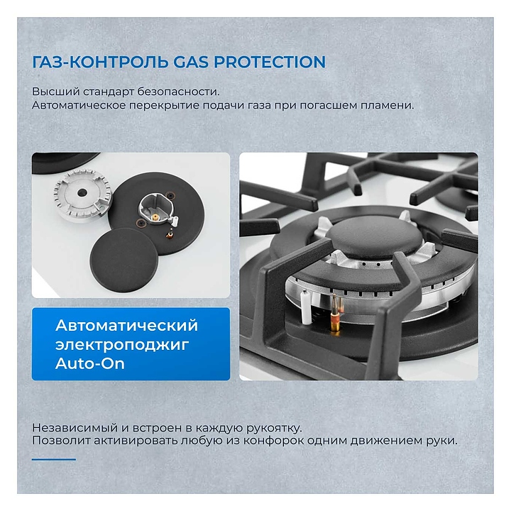 Варочная панель Zugel ZGH292W предназначена для приготовления большого ассортимента блюд в наплитной посуде в домашних условиях. Модель оснащена механическим управлением, 2 конфорками разной мощности, автоматическим электроподжигом Auto-On и рукоятками Steel Design. Газ-контроль Gas Protection автоматически перекрывает подачу газа при погасшем пламени. Мощная Вок-конфорка с 2 рассекателями и тройным контуром огня создает сильное пламя для приготовления в посуде большого объема. Рабочая поверхность выполнена из закаленного стекла, решетки - из чугуна, рукоятки - из металла. В комплект поставки входят шнур с вилкой, форсунки для конверсии газа, уплотнитель и монтажный комплект. Особенности: