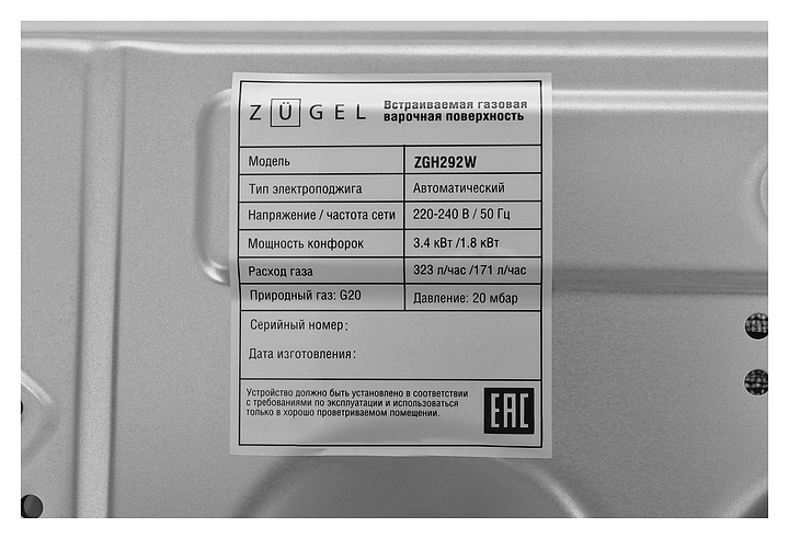 Панель варочная Zugel ZGH292W