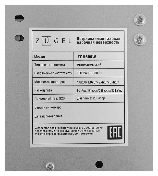 Панель варочная Zugel ZGH600W