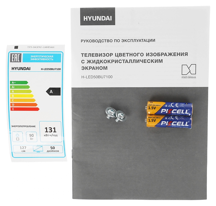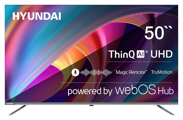Телевизор Hyundai H-LED50BU7100 предназначен для приема и воспроизведения видео и аудио контента с различных ресурсов таких как телевещание, Интернет, дополнительное подключаемое оборудование и физические носители в домашних условиях, гостиницах, офисах, холлах и кабинетах различных учреждений. Прибор оснащен плоским монитором, акустической стереосистемой с 2 встроенными динамиками, встроенным блоком питания, кабелем питания с вилкой и основным выключателем, пульт – кнопочной клавиатурой, датчиком движения и колесом прокрутки. Кожух прибора выполнен из ударопрочного полимера с матовой поверхностью черного цвета, фронтальная рамка и опоры с поверхностью серого оттенка, корпус пульта обтекаемой формы – из серого пластика.