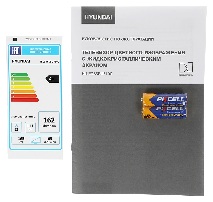 Телевизор Hyundai H-LED65BU7100 предназначен для приема и воспроизведения видео и аудио контента с различных ресурсов таких как телевещание, Интернет, дополнительное подключаемое оборудование и физические носители в домашних условиях, гостиницах, офисах, холлах и кабинетах различных учреждений. Прибор оснащен плоским монитором, акустической стереосистемой с 2 встроенными динамиками, встроенным блоком питания, кабелем питания с вилкой и основным выключателем, пульт – кнопочной клавиатурой, датчиком движения и колесом прокрутки. Кожух прибора выполнен из ударопрочного полимера с матовой поверхностью черного цвета, фронтальная рамка и опоры с поверхностью серого оттенка, корпус пульта обтекаемой формы – из серого пластика.
