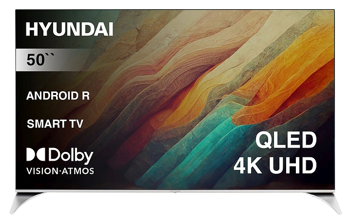 Телевизор Hyundai H-LED50QBU7500 предназначен для приема и воспроизведения видео и аудио контента с различных ресурсов таких как телевещание, Интернет, дополнительное подключаемое оборудование и физические носители в домашних условиях, гостиницах, офисах, холлах и кабинетах различных учреждений. Прибор оснащен плоским монитором, акустической стереосистемой с 2 встроенными динамиками, встроенным блоком питания, кабелем питания с вилкой и основным выключателем, пульт – кнопочной клавиатурой. Кожух прибора выполнен из ударопрочного полимера с матовой поверхностью черного цвета, нижняя рамка и опоры – из металла с поверхностью серебристого оттенка, корпус пульта – из черного пластика.