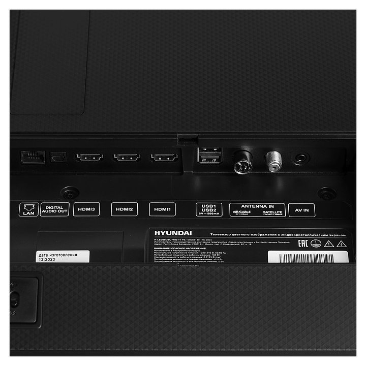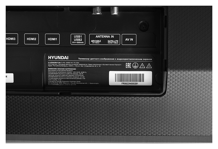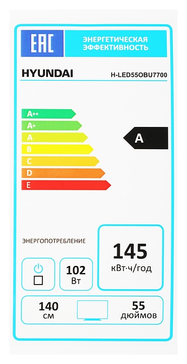 Телевизор Hyundai H-LED55OBU7700 предназначен для приема и воспроизведения видео и аудио контента с различных ресурсов таких как телевещание, Интернет, дополнительное подключаемое оборудование и физические носители в домашних условиях, гостиницах, офисах, холлах и кабинетах различных учреждений. Прибор оснащен плоским монитором, акустической стереосистемой с 2 встроенными динамиками, встроенным блоком питания, кабелем питания с вилкой, клавишами управления и светодиодными индикаторами, пульт – кнопочной клавиатурой. Кожух прибора выполнен из ударопрочного полимера с матовой поверхностью черного цвета, тыльная панель экрана и внешняя облицовка опоры – из металла с серебристой поверхностью, корпус пульта – из пластика в комбинации черного и серебристого тонов.