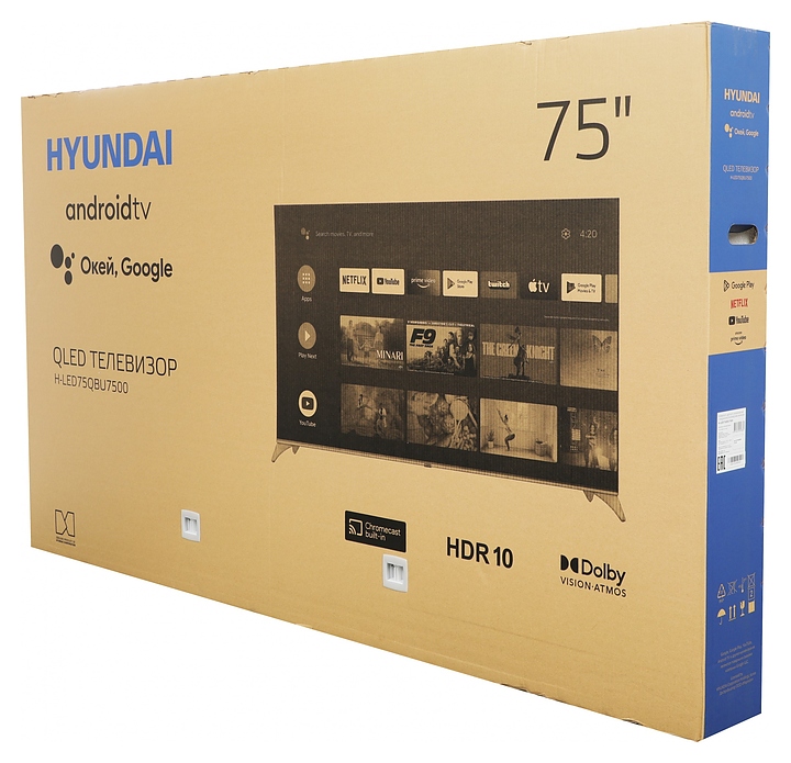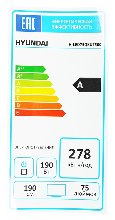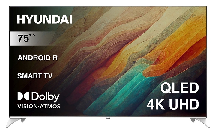 Телевизор Hyundai H-LED75QBU7500 предназначен для приема и воспроизведения видео и аудио контента с различных ресурсов таких как телевещание, Интернет, дополнительное подключаемое оборудование и физические носители в домашних условиях, гостиницах, офисах, холлах и кабинетах различных учреждений. Прибор оснащен плоским монитором, акустической стереосистемой с 2 встроенными динамиками, встроенным блоком питания, кабелем питания с вилкой и основным выключателем, пульт – кнопочной клавиатурой. Кожух прибора выполнен из ударопрочного полимера с матовой поверхностью черного цвета, нижняя рамка и опоры – из металла с поверхностью серебристого оттенка, корпус пульта – из черного пластика.