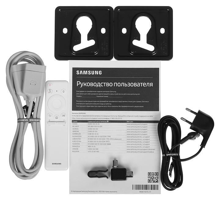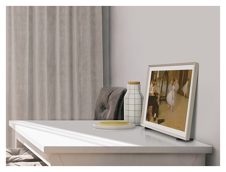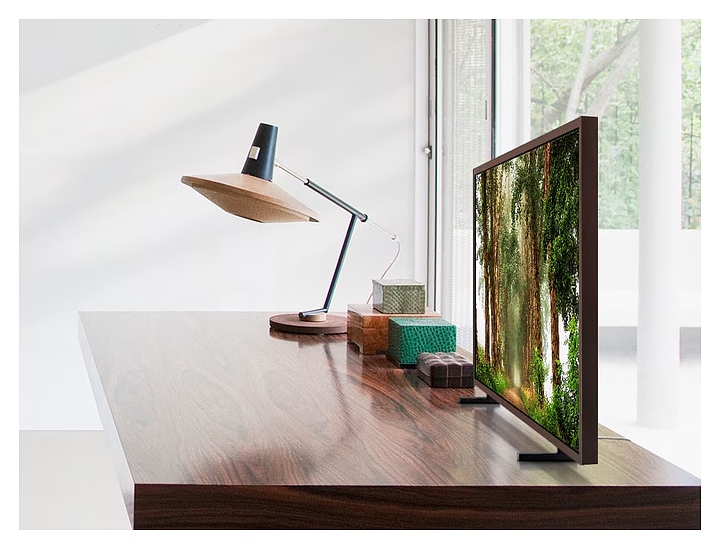 Телевизор Samsung QE32LS03CBUXRU коллекции The Frame предназначен для приема и воспроизведения видео и аудио контента с различных ресурсов таких как телевещание, Интернет, дополнительное подключаемое оборудование и физические носители в домашних условиях, гостиницах, офисах, холлах и кабинетах различных учреждений. Прибор оснащен плоским монитором, акустической стереосистемой с 2 встроенными динамиками, кабелем питания с вилкой и основным выключателем, пульт – кнопочной клавиатурой. Кожух прибора выполнен из ударопрочного полимера с матовой поверхностью черного цвета, рамка и опоры с поверхностью черного цвета, корпус пульта – из пластика с матовой поверхностью.