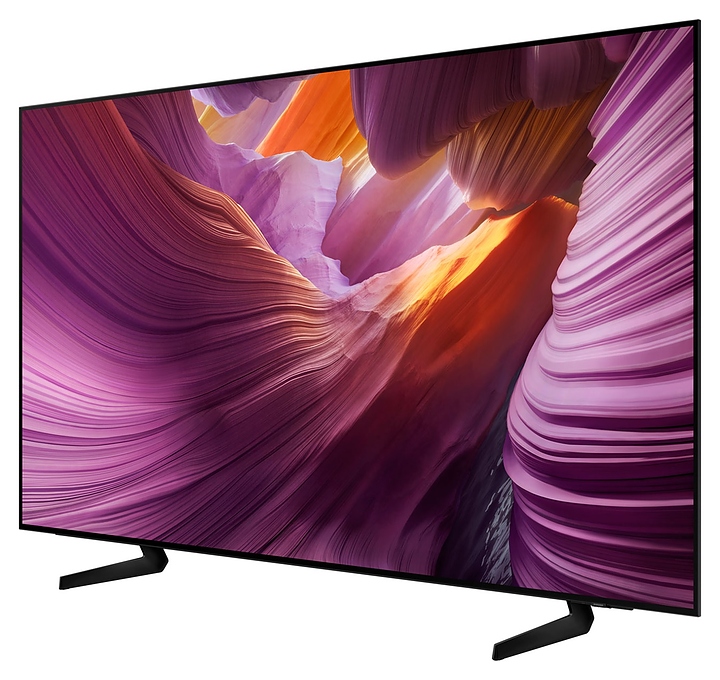 Телевизор Samsung QE55S85FAEXRU предназначен для приема и воспроизведения видео и аудио контента с различных ресурсов таких как телевещание, Интернет, дополнительное подключаемое оборудование и физические носители в домашних условиях, гостиницах, офисах, холлах и кабинетах различных учреждений. Прибор оснащен плоским монитором, акустической стереосистемой с 2 встроенными динамиками, встроенным блоком питания, кабелем питания с вилкой и основным выключателем, пульт – кнопочной клавиатурой. Кожух прибора выполнен из ударопрочного полимера с матовой поверхностью черного цвета, опоры с поверхностью черного цвета, рамка с поверхностью оттенка черный графит, корпус пульта – из пластика с матовой поверхностью.