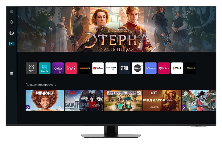 Интерфейс Smart Hub: удобный доступ к приложениям, онлайн-кинотеатрам, стриминговым сервисам и другому контенту с персонализированными рекомендациями