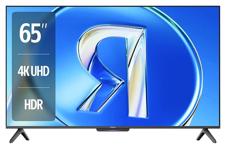Телевизор Яндекс ТВ Станция YNDX-00081 предназначен для приема и воспроизведения видео и аудио контента с различных ресурсов таких как Интернет, дополнительное подключаемое оборудование и физические носители в домашних условиях, гостиницах, офисах, холлах и кабинетах различных учреждений. Прибор оснащен плоским монитором, акустической стереосистемой с 2 встроенными динамиками, встроенным блоком питания, клавишами управления и светодиодным индикатором, пульт – кнопочной клавиатурой. Кожух прибора выполнен из ударопрочного полимера с матовой поверхностью черного цвета, рамка экрана и опоры с поверхностью черного цвета, корпус пульта – из черного пластика.