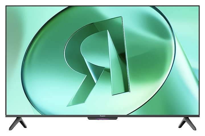 Телевизор Яндекс ТВ Станция YNDX-00076 предназначен для приема и воспроизведения видео и аудио контента с различных ресурсов таких как Интернет, дополнительное подключаемое оборудование и физические носители в домашних условиях, гостиницах, офисах, холлах и кабинетах различных учреждений. Прибор оснащен плоским монитором, акустической стереосистемой с 2 встроенными динамиками, встроенным блоком питания, клавишами управления и светодиодным индикатором, пульт – кнопочной клавиатурой. Кожух прибора выполнен из ударопрочного полимера с матовой поверхностью черного цвета, рамка экрана и опоры с поверхностью черного цвета, корпус пульта – из черного пластика.