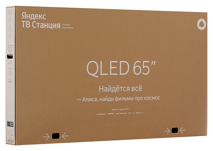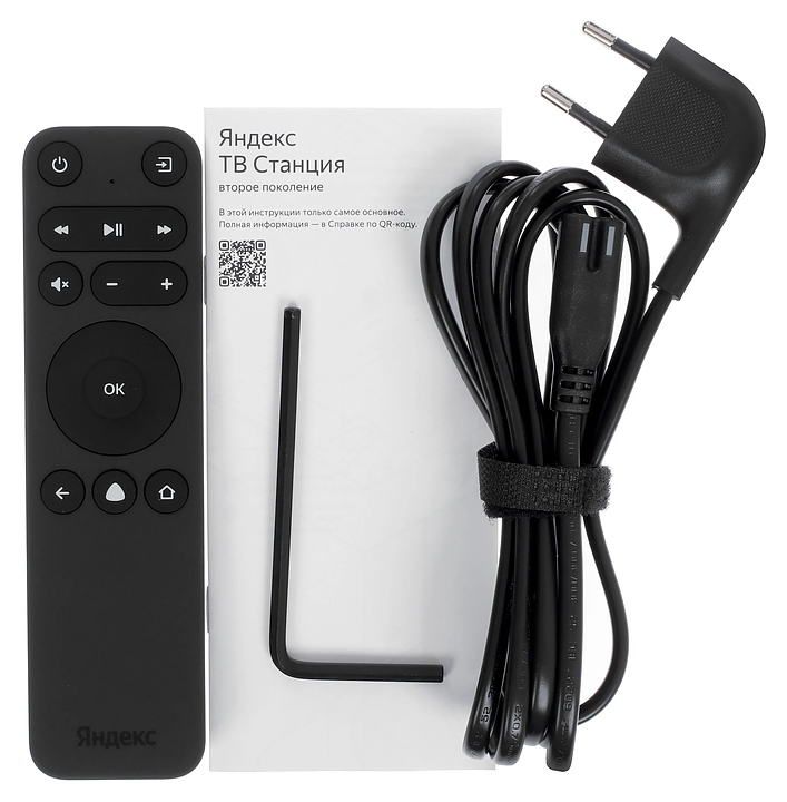 Телевизор Яндекс ТВ Станция YNDX-00096 предназначен для приема и воспроизведения видео и аудио контента с различных ресурсов таких как Интернет, дополнительное подключаемое оборудование и физические носители в домашних условиях, гостиницах, офисах, холлах и кабинетах различных учреждений. Прибор оснащен плоским монитором, акустической стереосистемой с 4 встроенными динамиками, встроенным блоком питания, клавишами управления и светодиодным индикатором, пульт – кнопочной клавиатурой. Кожух прибора выполнен из ударопрочного полимера с матовой поверхностью черного цвета, рамка экрана с поверхностью черного цвета, опоры – из металла с поверхностью серебристого оттенка, корпус пульта – из черного пластика.