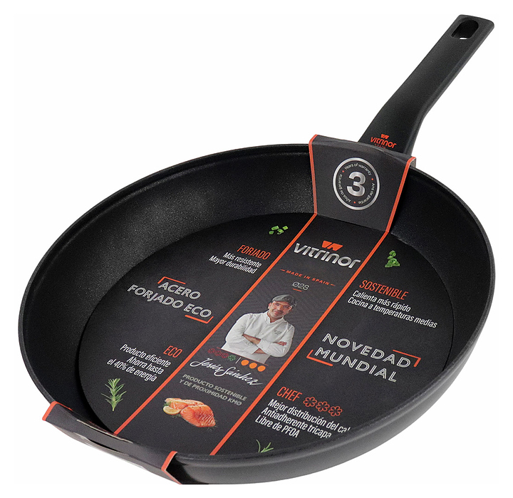 Cковорода Vitrinor V-Forged 20 используется на предприятиях общественного питания и торговли, а также в домашних условиях для приготовления блюд на любых типах варочных поверхностей, включая индукционные. Модель оснащена ручкой с отверстием для подвешивания. Трехслойное антипригарное покрытие Quantanium гарантирует приготовление с минимальным количеством масла и легкую очистку. Изделие выполнено из кованой стали, ручка - из бакелита. Особенности: