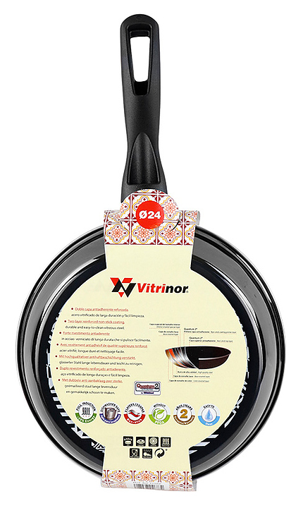 Cковорода Vitrinor Authentique Crystal 28 используется на предприятиях общественного питания и торговли, а также в домашних условиях для приготовления блюд на любых типах варочных поверхностей, включая индукционные. Модель оснащена эргономичной ручкой с отверстием для подвешивания. Изделие выполнено из стали с 2-слойным антипригарным покрытием, не содержащим PFOA, внешнее покрытие - из 2-слойной стеклоэмали, ручка - из бакелита. Особенности: