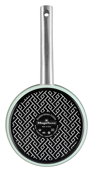 Ковш Vitrinor Nordic Mint 18 используется на предприятиях общественного питания и торговли, а также в домашних условиях для приготовления различных блюд на любых типах варочных поверхностей, включая индукционные. Модель оснащена эргономичной ручкой с отверстием для подвешивания. Изделие выполнено из стали с 2-слойным антипригарным покрытием, не содержащим PFOA, внешнее покрытие - из 2-слойной стеклоэмали, ручка - из нержавеющей стали. Особенности: