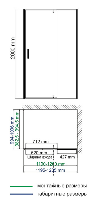 Уголок душевой Wasserkraft Spree 14P10 1200х1000х2000 мм, никель