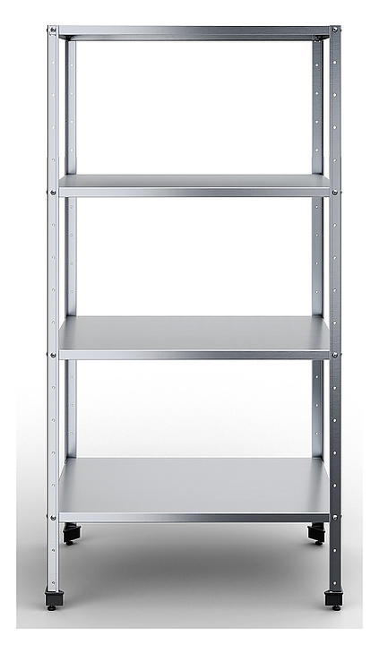 Кухонный стеллаж Rada СКСПЧ-8/6/0,4/0,2/18-4С предназначен для хранения посуды, инвентаря и сухих продуктов на предприятиях общественного питания и торговли. Разборный каркас выполнен из тубы 40x20 мм нержавеющей стали AISI 430, полки - из нержавеющей стали AISI 430. Особенности: