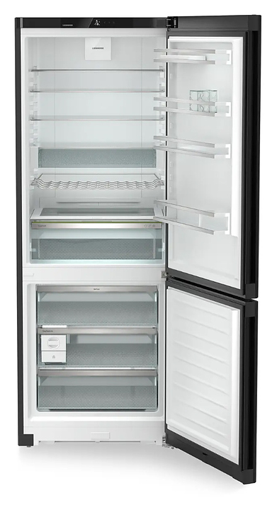 Холодильник Liebherr CNbdd 7723 серии Plus предназначен для охлаждения, замораживания, кратковременного и длительного хранения пищевых продуктов и напитков в гостиничных комплексах, офисах, а также домашних условиях. Модель оснащена сенсорной панелью управления с функцией блокировки от детей и монохромным ЖК-дисплеем и вертикальной, сплошной, эргономичной утопленной ручкой. Боковые стенки и дверь выполнены из нержавеющей стали черного цвета, устойчивой к появлению царапин и отпечатков пальцев, полки холодильной камеры - из стекла с декоративными планками с покрытием под нержавеющую сталь, полки морозильной камеры - из стекла, полки на дверце - из стекла с планкой из нержавеющей стали, сухая задняя стенка - из пластмассы.