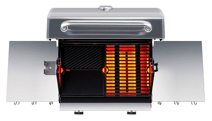 Гриль Steba VG 7000 предназначен для жарки мяса, рыбы и овощей на улице. Модель оснащена инновационной плавной регулировкой мощности для предотвращения скачков температуры нагрева, дисплеем, съемными решетками и панелью. Колеса обеспечивают удобство перемещения. Корпус выполнен из нержавеющей стали. Особенности: