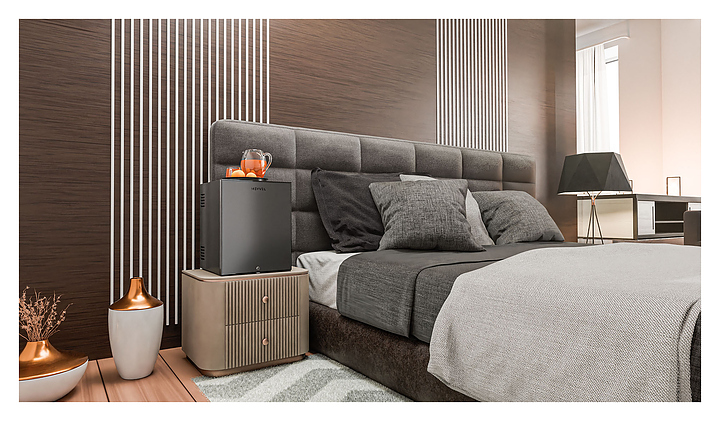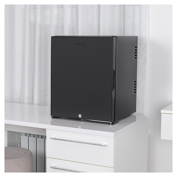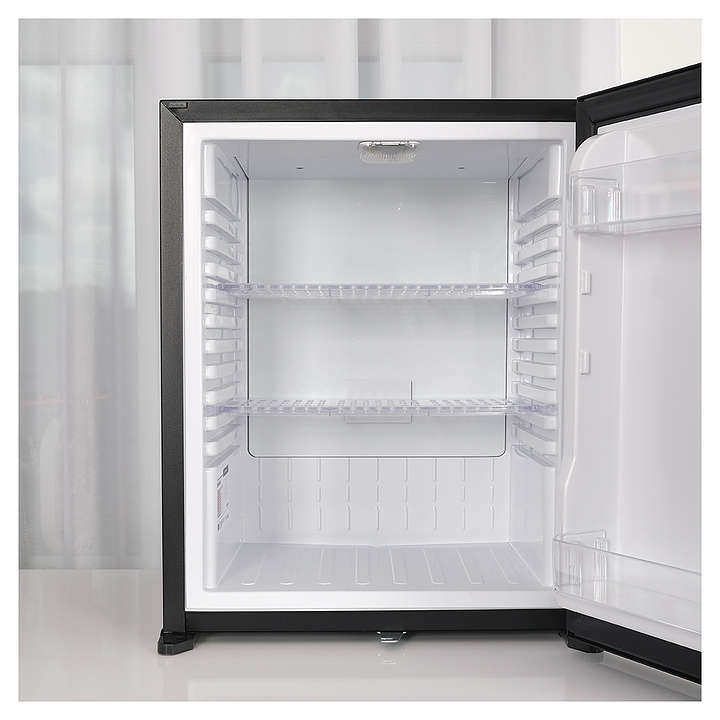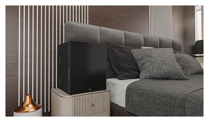 Минибар MEYVEL MMT-38B предназначен для охлаждения и кратковременного хранения скоропортящихся продуктов и напитков в отелях и гостевых домах. Модель оснащена глухой распашной дверью с утопленной ручкой, внутренним освещением, регулируемыми полками и замком. Гибридная технология обеспечивает равномерное охлаждение, экономичность и бесшумную работу. Автоматическая разморозка избавляет от необходимости вручную удалять наледь, что упрощает уход за устройством. Полки выполнены из пластика, покрытие двери - из матового стекла. Особенности: