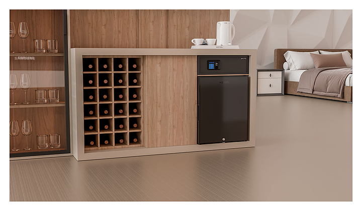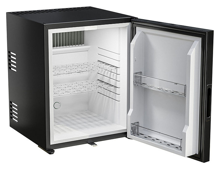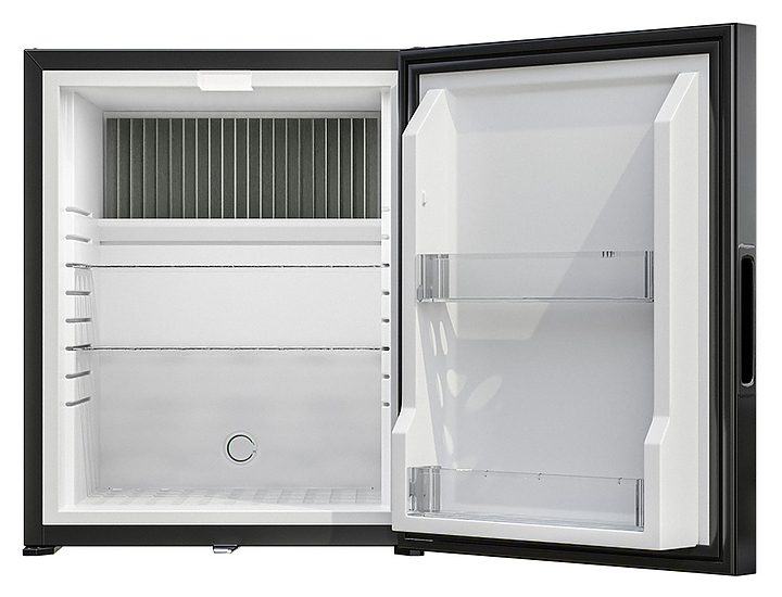 Минибар MEYVEL MMA-38B предназначен для охлаждения и кратковременного хранения скоропортящихся продуктов и напитков в отелях и гостевых домах. Модель оснащена глухой распашной дверью с утопленной ручкой, внутренним освещением, регулируемыми полками и замком. Абсорбционная система охлаждения гарантирует бесшумную работу, не создает вибраций и не издает неприятных звуков. Автоматическая разморозка избавляет от необходимости вручную удалять наледь, что упрощает уход за устройством. Полки выполнены из пластика, покрытие двери - из матового стекла. Особенности: