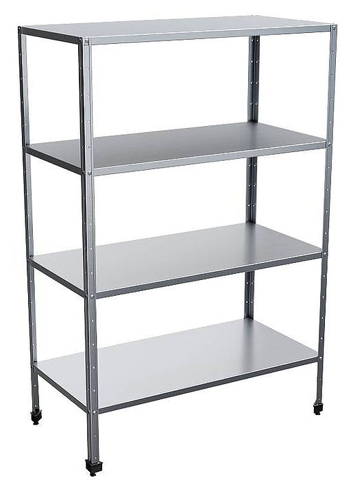 Кухонный стеллаж Rada СКСУЧ-10/5/18-4С предназначен для хранения посуды, инвентаря и сухих продуктов на предприятиях общественного питания и торговли. Разборный каркас выполнен из уголка 40x40 мм нержавеющей стали AISI 430, полки - из нержавеющей стали AISI 430. Особенности: