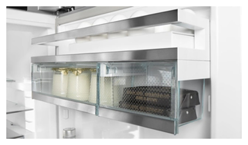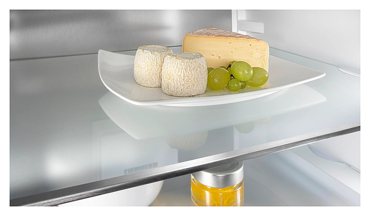 • Двухступенчатый, регулируемый по высоте VarioSafe для размещения небольших продуктов (стаканчиков с йогуртом, баночек с джемом или тюбиков)
