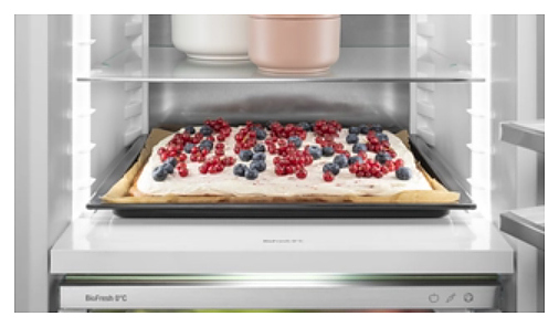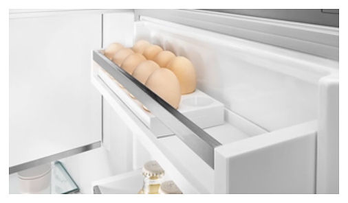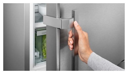 • Контейнер EasyFresh плотно закрывается и обеспечивает оптимальную для хранения неупакованных фруктов и овощей влажность, легко выдвигается благодаря встроенным направляющим с ограничителями движения
