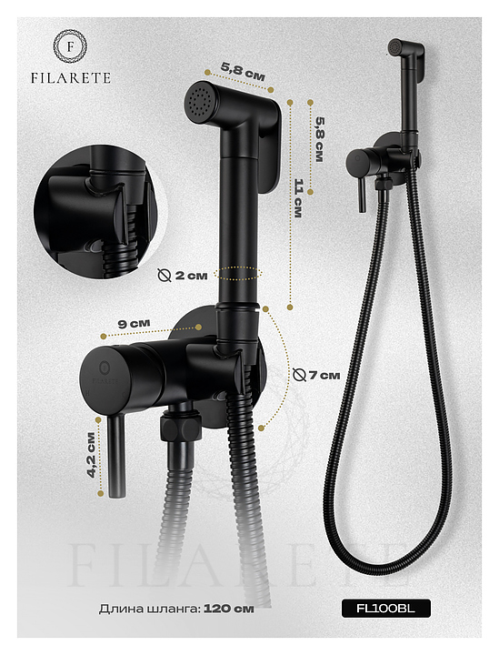 Душ гигиенический со смесителем FILARETE Roun FL100BL черный матовый