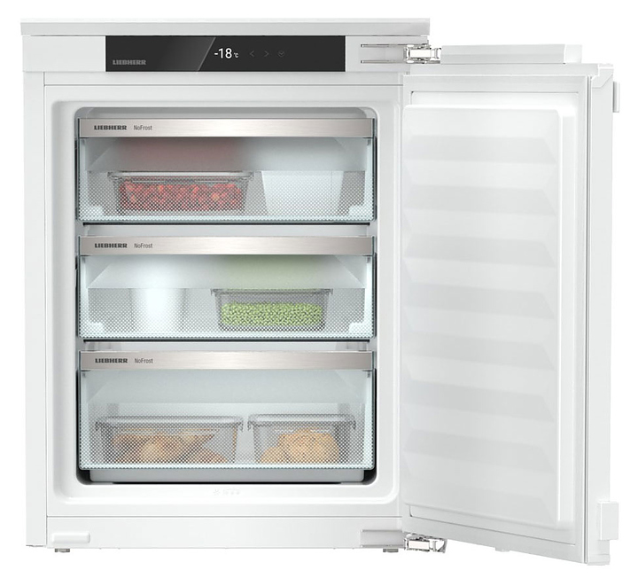 Встраиваемый морозильник Liebherr​ IFNd 3503 серии Pure предназначен для заморозки и длительного хранения продуктов и полуфабрикатов в частных домах, квартирах, отелях и офисах. Модель оснащена сенсорной панелью управления с монохромным ЖК-дисплеем с функцией блокировки от детей. Ящики выполнены из безопасного стекла.