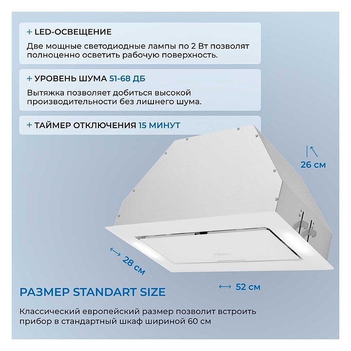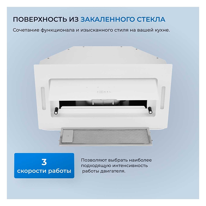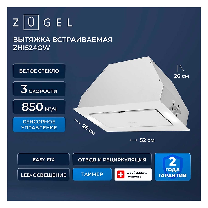 Кухонная вытяжка Zugel ZHI524W используется в домашних условиях для очистки воздуха от продуктов горения, копоти и запахов в процессе приготовления пищи путем принудительной вентиляции. Модель оснащена электронным сенсорным управлением, 3 скоростями и таймером. Светодиодные лампы гарантируют яркое и равномерное освещение рабочей зоны. Корпус выполнен из стали, панель управления - из закаленного стекла, жировой фильтр - из алюминия. В комплект поставки входит жироулавливающий фильтр. Особенности: