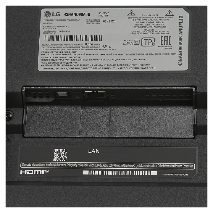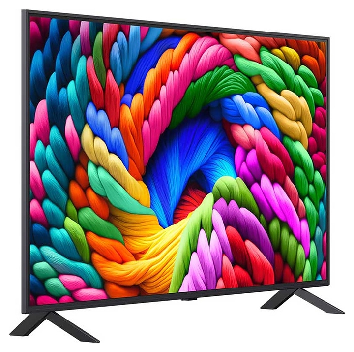 Телевизор LG 43NANO90A6B.ARUG предназначен для приема и воспроизведения видео и аудио контента с различных ресурсов таких как телевещание, Интернет, дополнительное подключаемое оборудование и физические носители в домашних условиях, гостиницах, офисах, холлах и кабинетах различных учреждений. Прибор оснащен плоским монитором, акустической стереосистемой с 2 встроенными направленными вниз динамиками, встроенным блоком питания, кабелем питания с вилкой и основным выключателем, пульт – кнопочной клавиатурой, датчиком движения и колесом прокрутки. Кожух прибора выполнен из ударопрочного полимера с матовой поверхностью черного цвета, фронтальная рамка с поверхностью синего оттенка, опоры с поверхностью черного цвета, корпус пульта – из черного пластика.