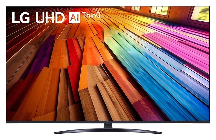 Телевизор LG 65UT81006LA.ARUG предназначен для приема и воспроизведения видео и аудио контента с различных ресурсов таких как телевещание, Интернет, дополнительное подключаемое оборудование и физические носители в домашних условиях, гостиницах, офисах, холлах и кабинетах различных учреждений. Прибор оснащен плоским монитором, акустической стереосистемой с 2 встроенными направленными вниз динамиками, встроенным блоком питания, кабелем питания с вилкой и основным выключателем, пульт – кнопочной клавиатурой, датчиком движения и колесом прокрутки. Кожух прибора выполнен из ударопрочного полимера с матовой поверхностью черного цвета, фронтальная рамка и подставка с поверхностью черного цвета, корпус пульта – из черного пластика.