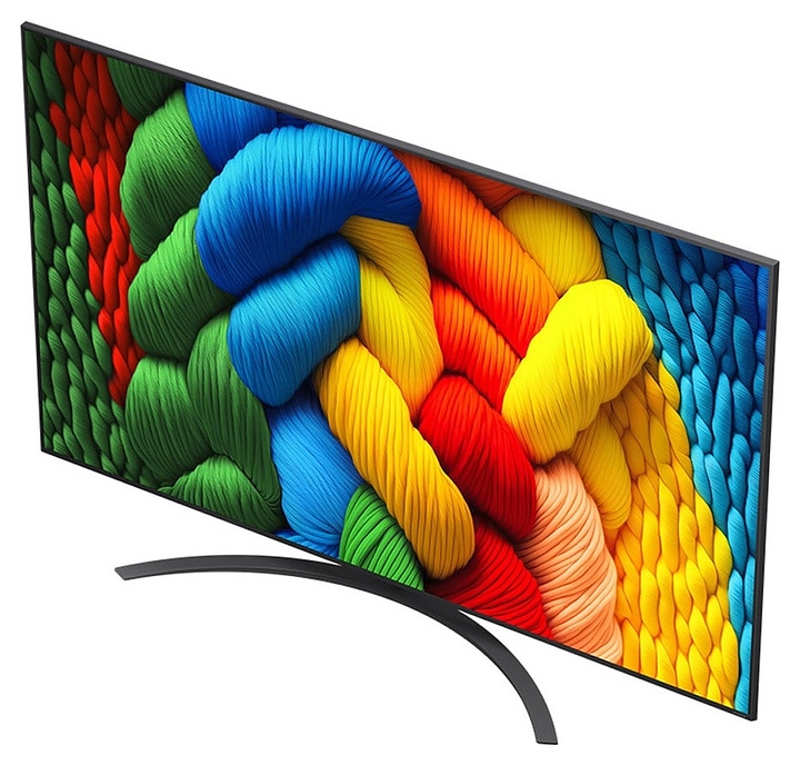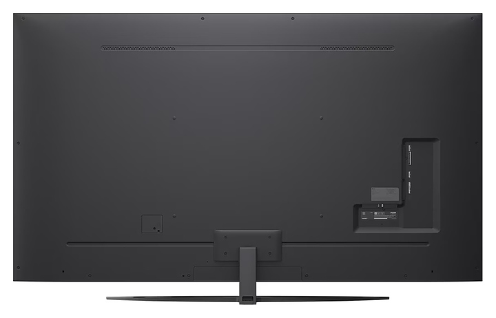 Телевизор LG 86NANO81A6A.ARUG предназначен для приема и воспроизведения видео и аудио контента с различных ресурсов таких как телевещание, Интернет, дополнительное подключаемое оборудование и физические носители в домашних условиях, гостиницах, офисах, холлах и кабинетах различных учреждений. Прибор оснащен плоским монитором, акустической стереосистемой с 2 встроенными направленными вниз динамиками, встроенным блоком питания, кабелем питания с вилкой и основным выключателем, пульт – кнопочной клавиатурой, датчиком движения и колесом прокрутки. Кожух прибора выполнен из ударопрочного полимера с матовой поверхностью черного цвета, фронтальная рамка и подставка с поверхностью черного цвета, корпус пульта – из черного пластика.