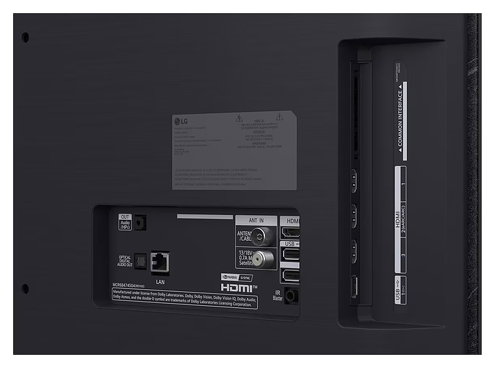 Телевизор LG OLED48C5RLA.ARUG предназначен для приема и воспроизведения видео и аудио контента с различных ресурсов таких как телевещание, Интернет, дополнительное подключаемое оборудование и физические носители в домашних условиях, гостиницах, офисах, холлах и кабинетах различных учреждений. Прибор оснащен плоским монитором, акустической стереосистемой с 2 встроенными направленными вниз динамиками и 2 сабвуферами, встроенным блоком питания, кабелем питания с вилкой и основным выключателем, пульт – кнопочной клавиатурой, датчиком движения и колесом прокрутки. Кожух прибора выполнен из ударопрочного полимера с матовой поверхностью черного цвета, фронтальная рамка с поверхностью черного цвета, корпус пульта – из черного пластика.