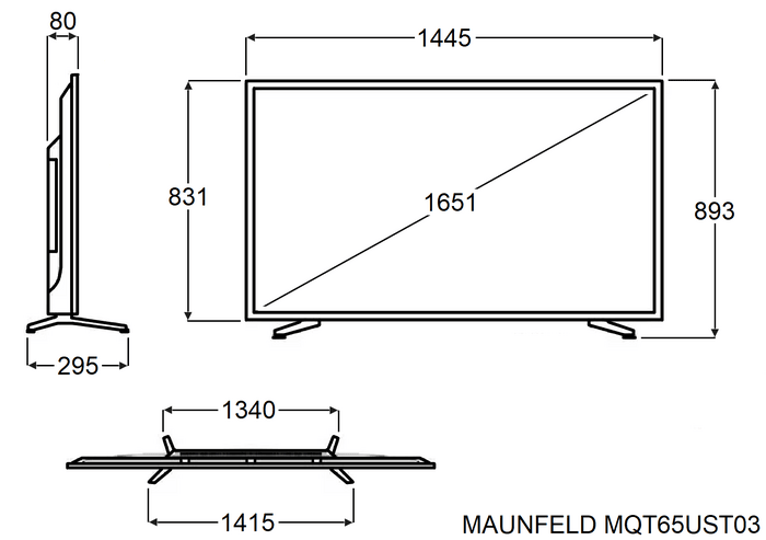 Телевизор Maunfeld MQT65UST03 предназначен для приема и воспроизведения видео и аудио контента с различных ресурсов таких как телевещание, Интернет, дополнительное подключаемое оборудование и физические носители в домашних условиях, гостиницах, офисах, холлах и кабинетах различных учреждений. Прибор оснащен плоским широкоформатным монитором, акустической стереосистемой с 2 встроенными динамиками, встроенным блоком питания и основным выключателем, пульт – кнопочной клавиатурой. Кожух прибора выполнен из ударопрочного полимера с матовой поверхностью черного цвета, рамка экрана и опоры с поверхностью черного цвета, корпус пульта – из черного пластика.