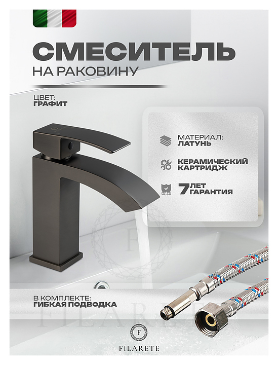 Смеситель для раковины FILARETE Waterfall FL5010BG, графит