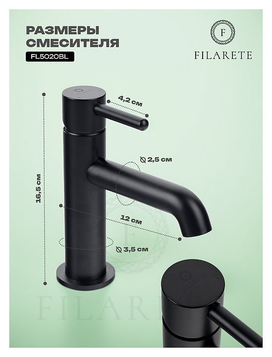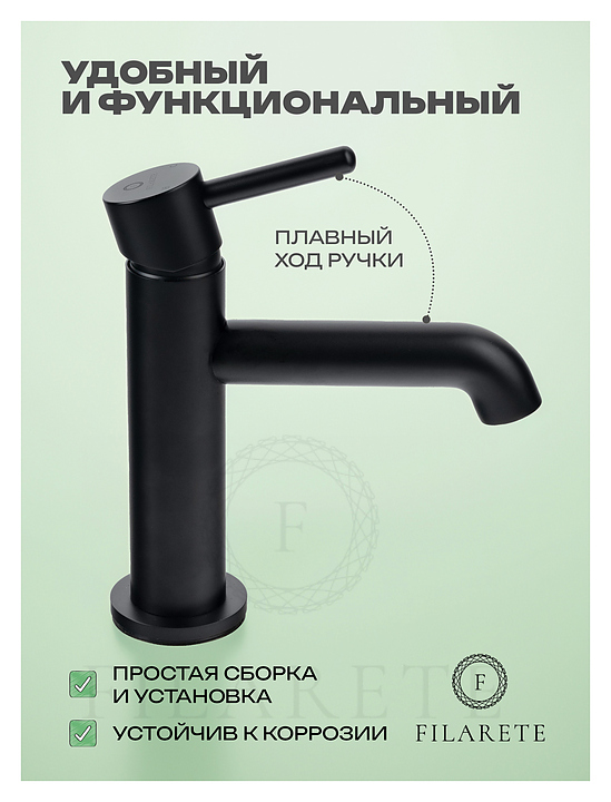 Смеситель для раковины FILARETE Roun FL5020BL, черный матовый