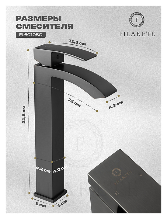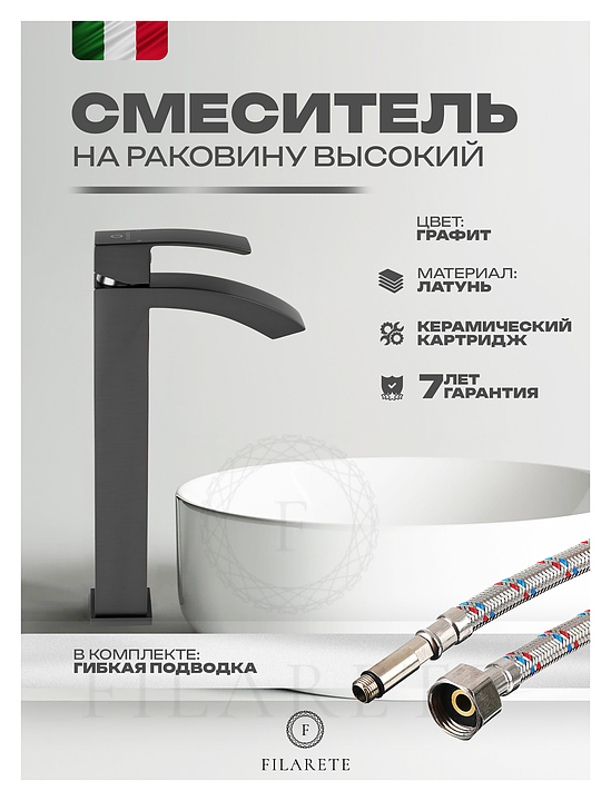 Смеситель для раковины FILARETE Waterfall FL6010BG, графит