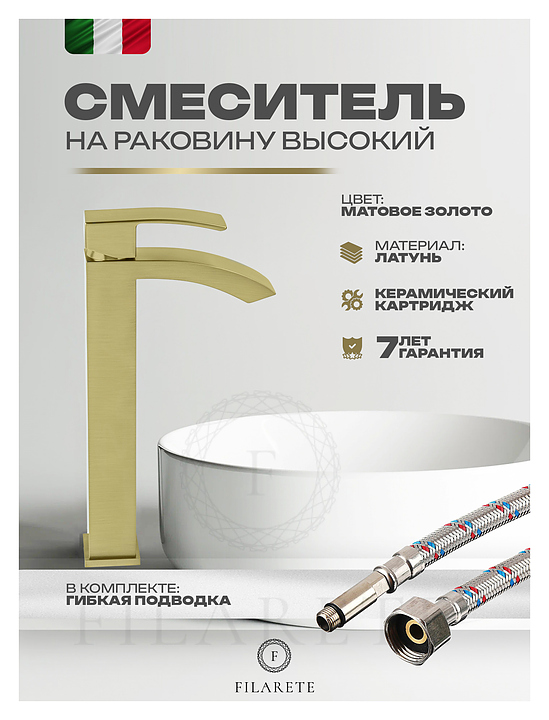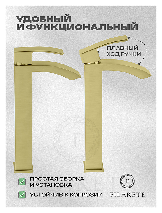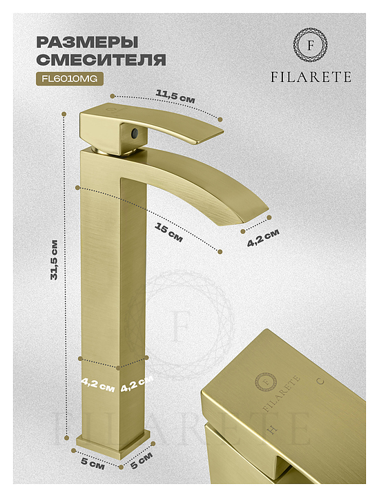 Смеситель для раковины FILARETE Waterfall FL6010MG, матовое золото