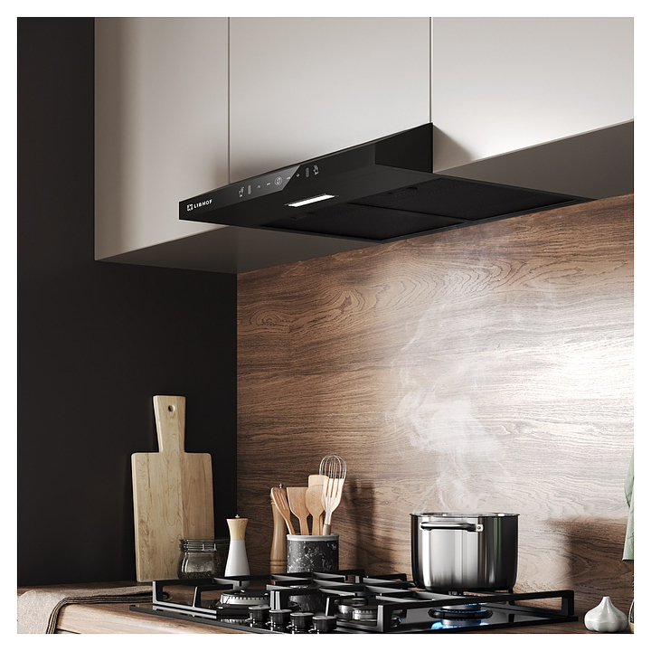 Подвесная кухонная вытяжка Libhof LF-3350b предназначена для очистки воздуха от продуктов горения, копоти и запахов в процессе приготовления пищи путем принудительной вентиляции в домашних условиях. Модель оснащена двумя жироулавливающими фильтрами, вентилятором с электродвигателем, откидной крышкой, светодиодными светильниками, кабелем питания с вилкой, панелью управления с сенсорными клавишами и цифровым дисплеем индикации. Корпус выполнен из высококачественной стали с термостойким покрытием, жироулавливающий фильтр – из алюминия. В комплект поставки входят вытяжка в сборе, инструкция, комплект крепежа, обратный клапан. Особенности: