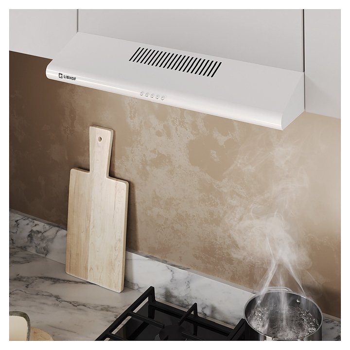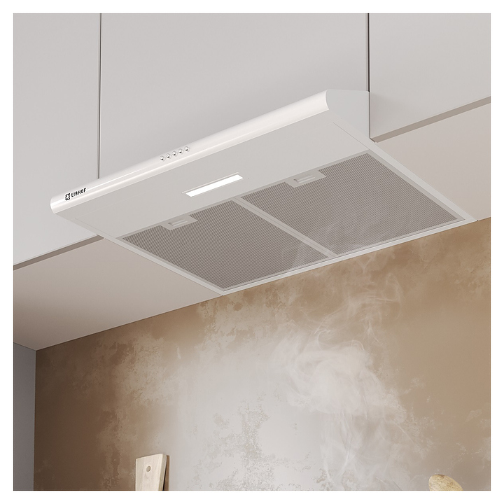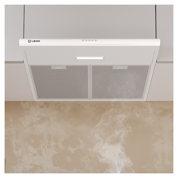 Подвесная кухонная вытяжка Libhof LF-2560 white предназначена для очистки воздуха от продуктов горения, копоти и запахов в процессе приготовления пищи путем принудительной вентиляции в домашних условиях. Модель оснащена двумя жироулавливающими фильтрами, вентилятором с электродвигателем, откидной крышкой, светодиодными светильниками, кабелем питания с вилкой, панелью управления. Корпус выполнен из высококачественной стали с термостойким покрытием, жироулавливающий фильтр из алюминия. В комплект поставки входят вытяжка в сборе, инструкция, комплект крепежа, обратный клапан. Особенности: