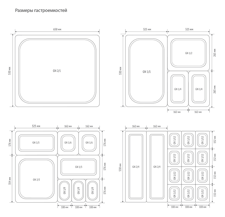 Гастроемкость Luxstahl GN 1/3-100 предназначена для демонстрации, заморозки, приготовления, транспортировки и хранения продуктов в пароконвектоматах, конвекционных печах, расстоечных шкафах, холодильных и морозильных шкафах, столах и другом оборудовании на предприятиях общественного питания и торговли. Модель оснащена закругленными углами для удобства выгрузки содержимого. Изделие выполнено из нержавеющей стали. Дополнительные характеристики: