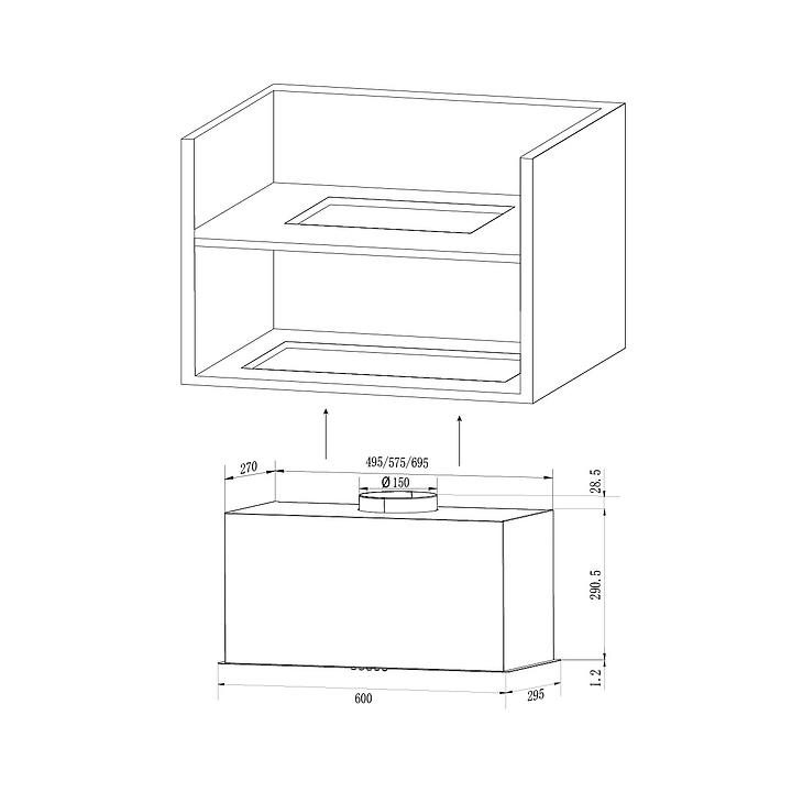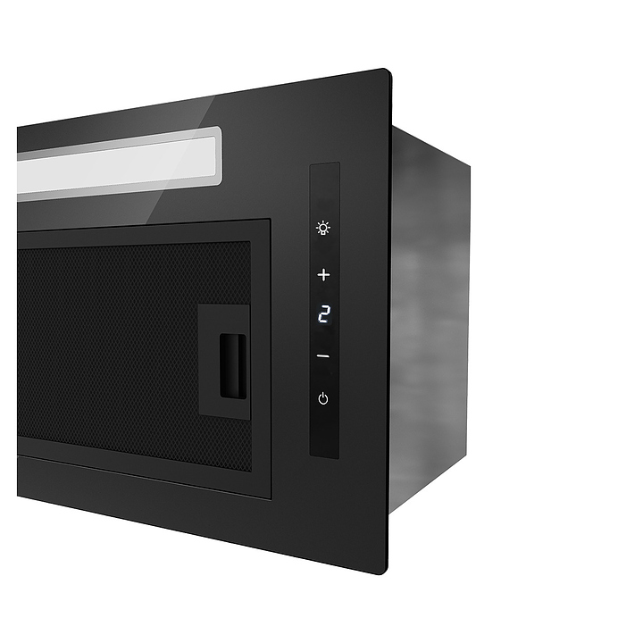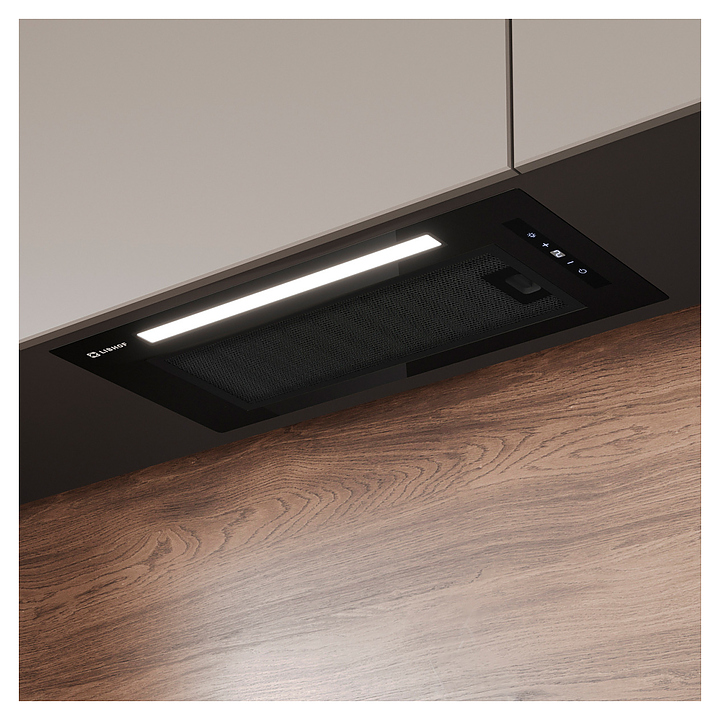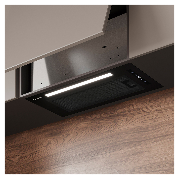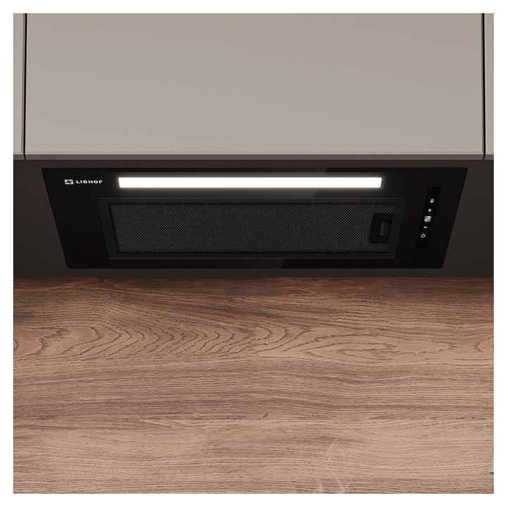 Полновстраиваемая кухонная вытяжка Libhof LB-3260 black предназначена для очистки воздуха от продуктов горения, копоти и запахов в процессе приготовления пищи путем принудительной вентиляции в домашних условиях. Модель оснащена двумя жироулавливающими фильтрами, вентилятором с электродвигателем, откидной крышкой, светодиодными светильниками, кабелем питания с вилкой, панелью управления с сенсорными клавишами и цифровым дисплеем индикации. Корпус выполнен из высококачественной стали с термостойким покрытием, жироулавливающий фильтр – из алюминия. В комплект поставки входят вытяжка в сборе, инструкция, комплект крепежа, обратный клапан. Особенности: