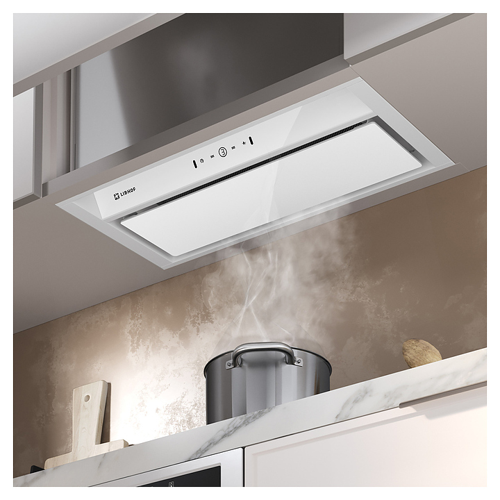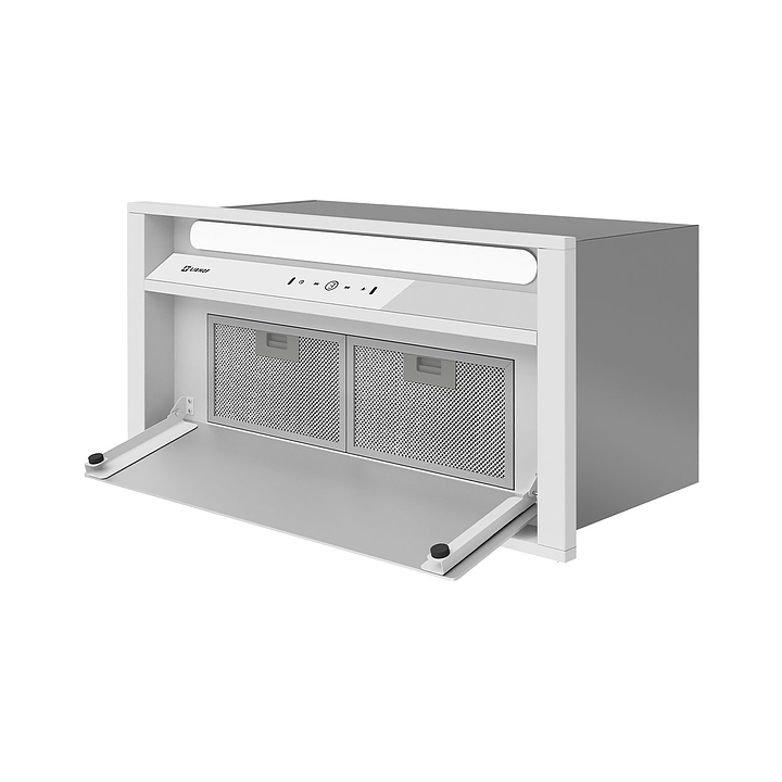 Полновстраиваемая кухонная вытяжка Libhof LB-3160 white предназначена для очистки воздуха от продуктов горения, копоти и запахов в процессе приготовления пищи путем принудительной вентиляции в домашних условиях. Модель оснащена двумя жироулавливающими фильтрами, вентилятором с электродвигателем, откидной крышкой, светодиодными светильниками, кабелем питания с вилкой, панелью управления с сенсорными клавишами и цифровым дисплеем индикации. Корпус выполнен из высококачественной стали с термостойким покрытием, жироулавливающий фильтр – из алюминия. В комплект поставки входят вытяжка в сборе, инструкция, комплект крепежа, обратный клапан. Особенности: