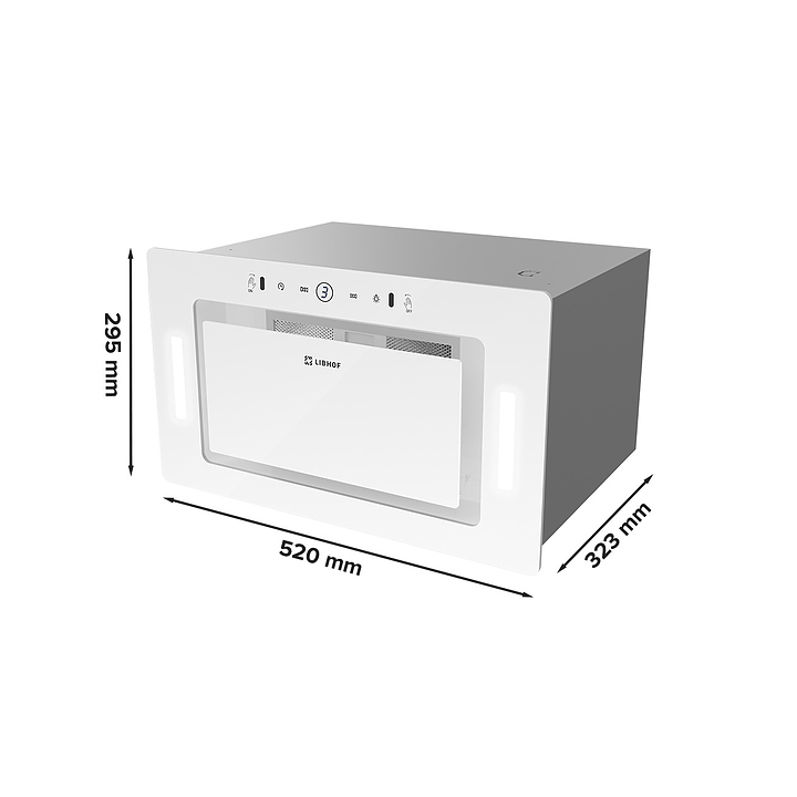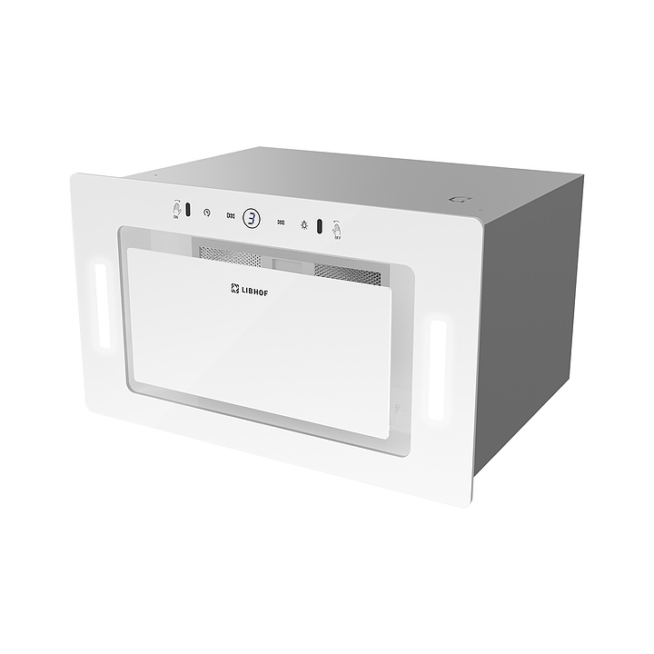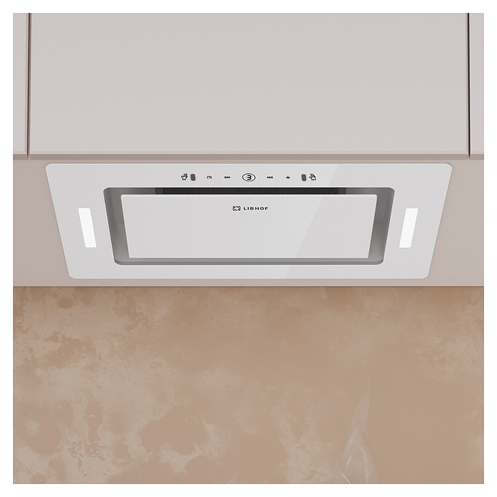 Полновстраиваемая кухонная вытяжка Libhof LB-0652 white предназначена для очистки воздуха от продуктов горения, копоти и запахов в процессе приготовления пищи путем принудительной вентиляции в домашних условиях. Модель оснащена пятислойным жироулавливающим фильтром, вентилятором с электродвигателем, откидной крышкой, светодиодными светильниками, кабелем питания с вилкой, панелью управления с сенсорными клавишами и цифровым дисплеем индикации. Корпус выполнен из высококачественной стали с термостойким покрытием, жироулавливающий фильтр – из алюминия. В комплект поставки входят вытяжка в сборе, инструкция, обратный клапан, пульт ДУ. Особенности: