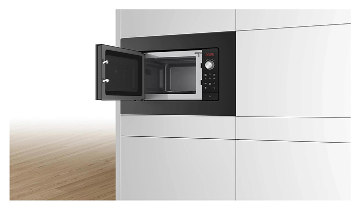Встраиваемая микроволновая печь Bosch BEL653MB3 серии 2 предназначена для приготовления пищи, подогрева готовых блюд и ингредиентов, а также размораживания полуфабрикатов в частных домах, квартирах, отелях и офисах. Модель оснащена электронным управлением, кнопкой старт/стоп, LED дисплеем, часами и таймером. Функция AutoPilot самостоятельно регулирует температуру, время приготовления и режимы нагрева без необходимости следить за процессом. Внутренняя поверхность покрыта эмалью, дверца - с двойным остеклением и термоотражающим покрытием. В комплект поставки входит стеклянное блюдо. Особенности: