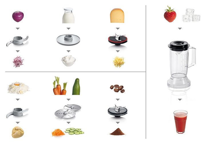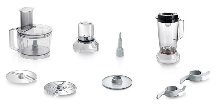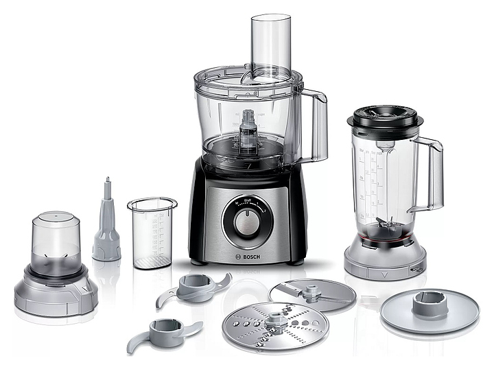 Кухонный комбайн Bosch MCM3501M серии MultiTalent 3 предназначен для замеса теста, измельчения, смешивания и взбивания различных продуктов в квартирах и частных домах. Модель оснащена поворотным переключателем. При нажатии кнопки «Импульсный режим» комбайн начинает работу, при отпускании - мгновенно прекращает, что позволяет строго контролировать процесс измельчения или перемешивания. Корпус выполнен из пластика и металла, ножи - из нержавеющей стали, чаша и блендер - из пластика, ножки-присоски - из резины. Комплектация: