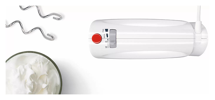 Ручной миксер Bosch MFQ3010 серии CleverMixx предназначен для взбивания кремов, муссов, замешивания теста, а также для приготовления пюре, соусов и коктейлей в частных домах и квартирах. Модель оснащена 2 типами насадок, эргономичной формой корпуса, ручкой с мягкими вставками Soft-Touch, кнопкой отсоединения насадок, импульсным и турбо режимами. Корпус выполнен из пластика, который не содержат BPA (Бисфенол А) и отличается безопасностью для здоровья, венчики - из нержавеющей стали. В комплект поставки входят 2 венчика для взбивания и 2 крюка для теста. Дополнительные характеристики: