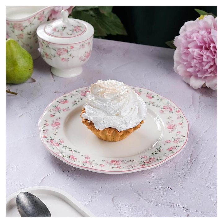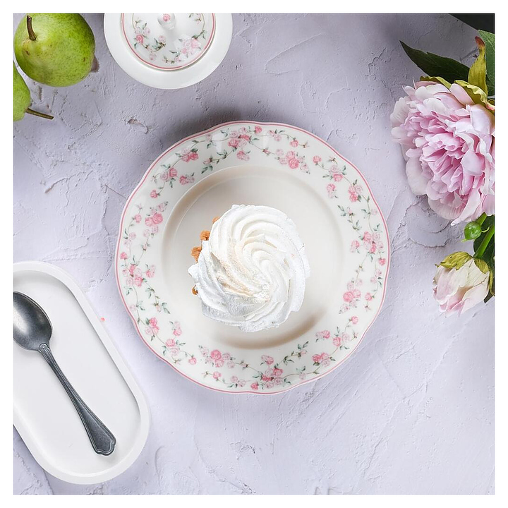Тарелка основная Noble Retro Ritz-La Vie En Rose 305002A-G001-K007 к=36 предназначена для профессионального использования в кафе и ресторанах, а также в домашних условиях. Модель покрыта изображением роз. Изделие выполнено из фарфора, технология изготовления и химический состав которого, обеспечивают устойчивую к истиранию и царапинам, полностью герметичную гигиеничную поверхность. Особенности: