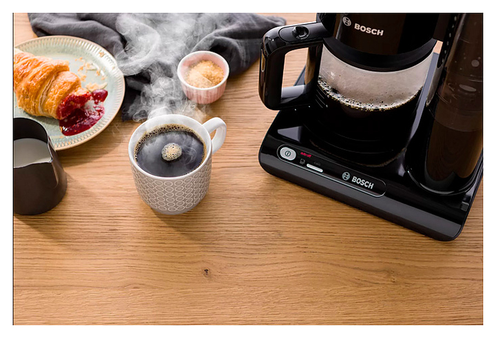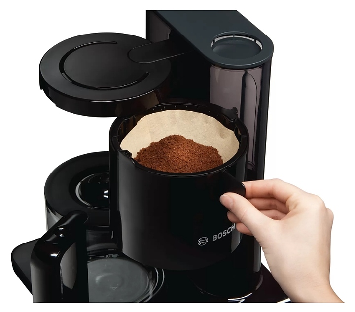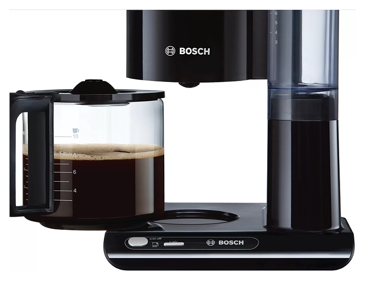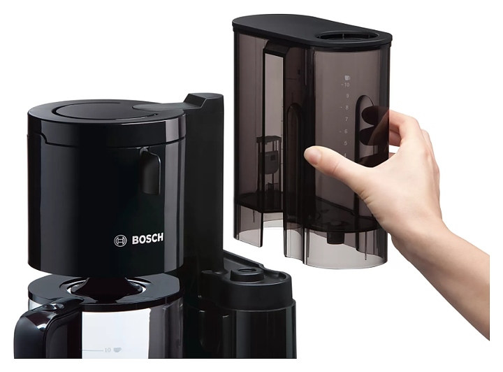 Кофеварка Bosch TKA8013 серии Styline используется в частных домах, квартирах, отелях и офисах для приготовления кофе. Модель оснащена кнопочным управлением, противокапельной системой и настройкой контроля крепости кофе. Технология Volume Automatic оптимизирует процесс приготовления напитка и обеспечивает идеальное соотношение между крепостью, вкусом и ароматом. Технология Dual Heating гарантирует оптимальное сочетание двух различных температурных режимов для приготовления и поддержания оптимальной температуры готового напитка. В комплект поставки входят одноразовый фильтр и прозрачный съемный контейнер для воды. Особенности: